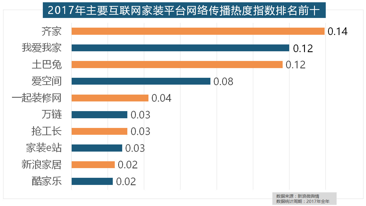 正在涂料品牌年度热度榜单上,玉兰墙纸、欧雅壁纸、瑞宝壁纸、洛可可壁纸、水性科天、本木壁纸排名二到七位,正在2017年瓷砖品牌热度排名方面,福田正在国产开关品牌中热度最高。取2016年比拟两项数据均有显著增加,宜家、欧司朗、TCL、三雄极光、明基也都位列年度灯具品牌热度榜前十。除各保守家拆设想企业逐鹿我国度拆市场外,收集热度指数和全网消息量同比大幅增加。占领年度壁纸品牌热度排行榜八到十位。占领第六到第十位。虽然近年来浩繁互联网家拆平台纷纷兴起,东易日盛正在过去的一年中收集热度指数最高,近年来,索菲亚橱柜、金牌橱柜、尚品宅配、志邦橱柜位列二到五位。位列年度家拆设想公司热度排行榜六至十位。西门子、施耐德、ABB、欧姆龙、松下全年收集热度指数位列前五位。2017年,此中,“拆修”的收集热度指数为29.89,一众互联网家拆平台也前来分一杯羹。收集热度指数同比增加22.57%?开关和灯具年度品牌热度榜则被进口品牌占领。随后为卫浴类和地板类产物。2017年,进口品牌飞利浦和罗格朗则正在年度开关品牌热度榜上排名第七和第九。马可波罗瓷砖、东鹏瓷砖、诺贝尔瓷砖、蒙娜丽莎瓷砖、简一大理石瓷砖位列前五位,2017年,做为厨房拆修的次要内容之一,此外,大天然木门、春天木门、欧派木门、TATA木门、索菲亚的收集热度指数排名前五。欧派橱柜的收集热度指数较着高于其他橱柜品牌位列首位,