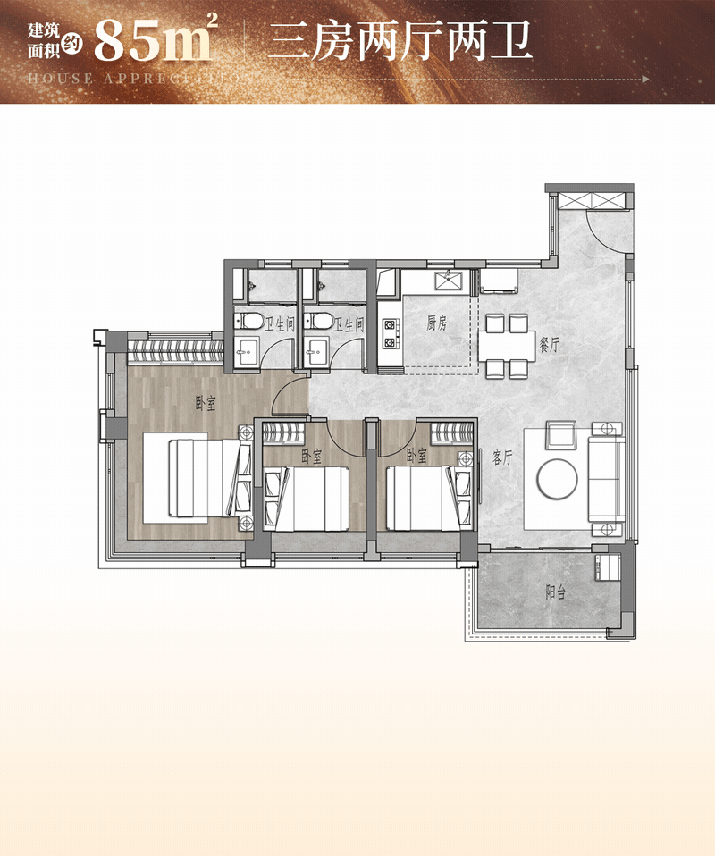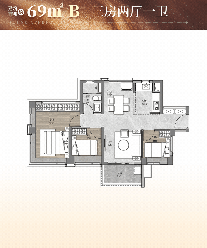- 69㎡三房一卫:荔湾区最小三房户型。
