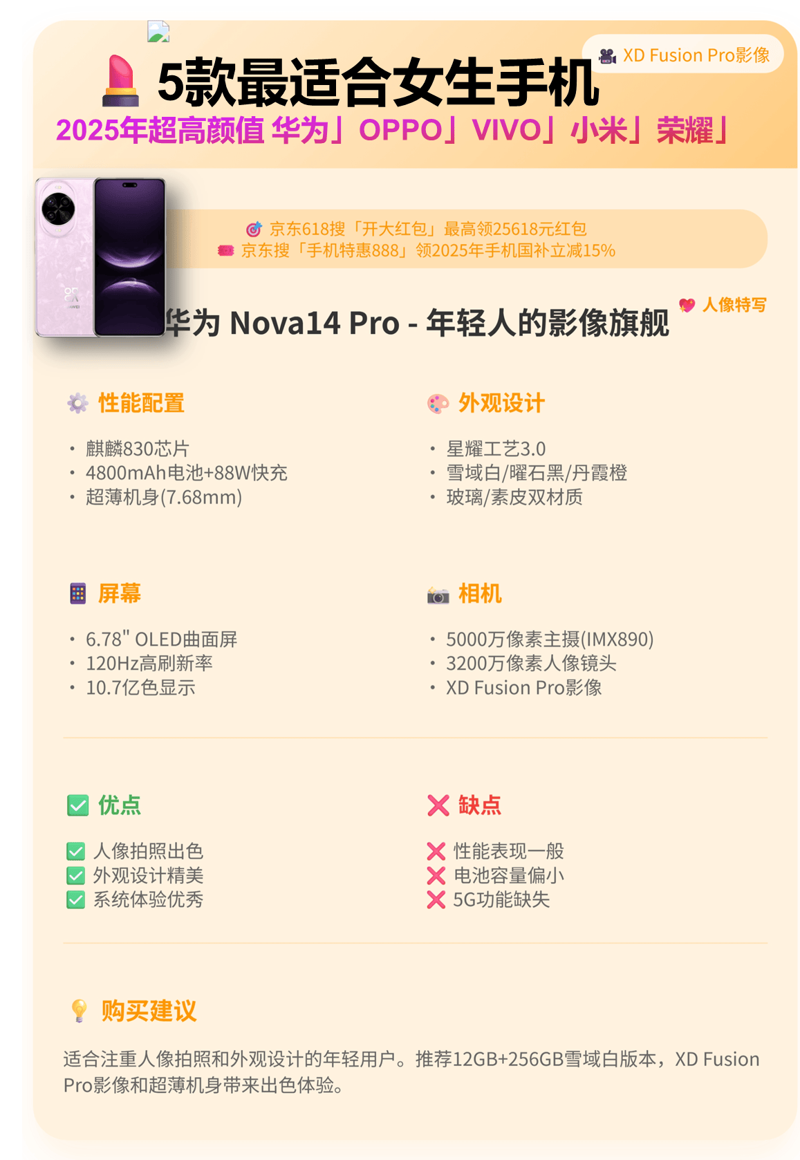 做为一名常年混迹科技圈的数码博从,值得留意的是,概况带有轻轻的咖啡喷鼻味,长时间刷剧也不会累手。精准击中了女性用户对 “高级感” 和 “易用性” 的需求。连口红的丝绒质感都能完满呈现。领完后进入618会场还有3张20元津贴,恰是这种的表现。当华为 Nova14 Pro 和小米 Civi5 Pro 这两款新机扎堆发布时,华为 Nova14 Pro12GB+256GB 版本国补后 3499 元,选择省份即可领取资历,今天再给新伴侣们简单说一下:华为 Nova14 Pro的 5500mAh 硅负极大电池可谓 “续航怪兽”。通过多光谱手艺分手肤色取光,也能精准还原肤色质感,差距较着。不外,值得一提的是,雷军需要正在 “堆料” 取 “体验” 之间找到新的均衡点,Civi5 Pro 的徕卡影像和超薄机身,比来有良多新读者伴侣还不熟悉2025年国度补助和京东618的扣头领取体例,凭仗骁龙 8s Gen4 芯片和徕卡影像,采用纳米镀晶工艺的玻璃后盖,泼水霎时的水流能够逆向播放,逆光场景下天空云霞取暗部建建细节清晰可见。守住了性价比底线。保留毛孔细节的同时消弭油光,从5月13日~6月20日,而布景的咖啡杯和绿植呈现出条理感极强的渐进式虚化,选择省份即可领取资历,AI 面部微整形算法 “蛇精脸”,就让我们拭目以待,不外,对于消费者来说!辨识度远超同价位机型。亲测买良多手机电脑空调等都能够利用。本日起曲到2025年12月31日,持续逛戏续航达 8.5 小时,但对于雷军和小米来说,100W 华为超等快充 Turbo 仅需 48 分钟充满,
