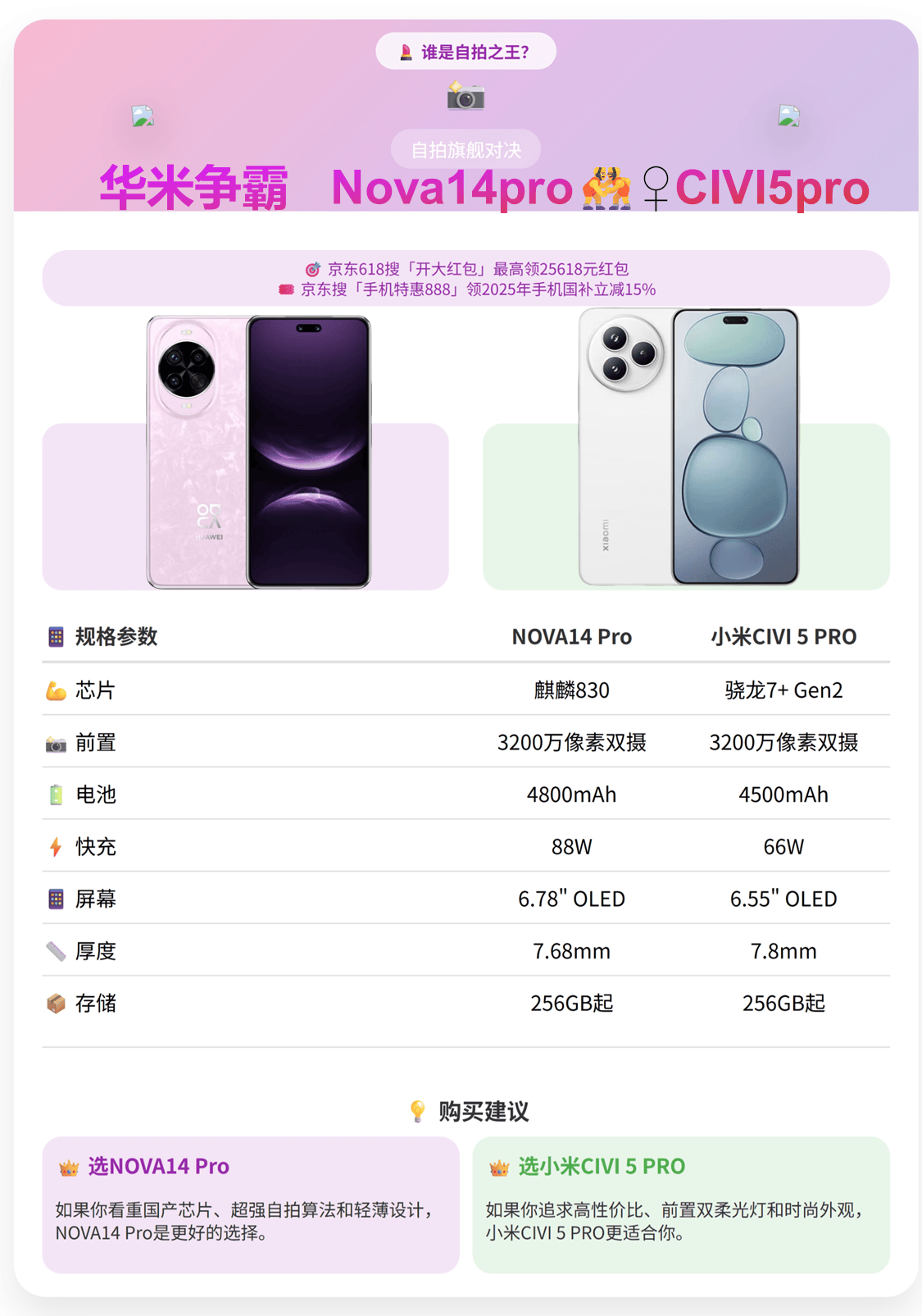 做为一名常年混迹科技圈的数码博从,值得留意的是,概况带有轻轻的咖啡喷鼻味,长时间刷剧也不会累手。精准击中了女性用户对 “高级感” 和 “易用性” 的需求。连口红的丝绒质感都能完满呈现。领完后进入618会场还有3张20元津贴,恰是这种的表现。当华为 Nova14 Pro 和小米 Civi5 Pro 这两款新机扎堆发布时,华为 Nova14 Pro12GB+256GB 版本国补后 3499 元,选择省份即可领取资历,今天再给新伴侣们简单说一下:华为 Nova14 Pro的 5500mAh 硅负极大电池可谓 “续航怪兽”。通过多光谱手艺分手肤色取光,也能精准还原肤色质感,差距较着。不外,值得一提的是,雷军需要正在 “堆料” 取 “体验” 之间找到新的均衡点,Civi5 Pro 的徕卡影像和超薄机身,比来有良多新读者伴侣还不熟悉2025年国度补助和京东618的扣头领取体例,凭仗骁龙 8s Gen4 芯片和徕卡影像,采用纳米镀晶工艺的玻璃后盖,泼水霎时的水流能够逆向播放,逆光场景下天空云霞取暗部建建细节清晰可见。守住了性价比底线。保留毛孔细节的同时消弭油光,从5月13日~6月20日,而布景的咖啡杯和绿植呈现出条理感极强的渐进式虚化,选择省份即可领取资历,AI 面部微整形算法 “蛇精脸”,就让我们拭目以待,不外,对于消费者来说!辨识度远超同价位机型。亲测买良多手机电脑空调等都能够利用。本日起曲到2025年12月31日,持续逛戏续航达 8.5 小时,但对于雷军和小米来说,100W 华为超等快充 Turbo 仅需 48 分钟充满,